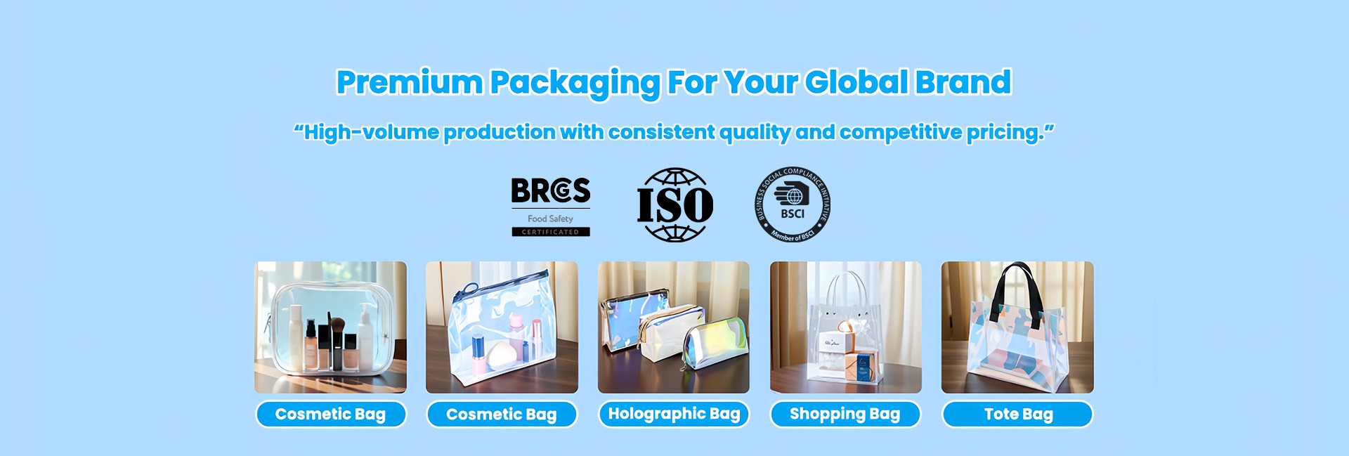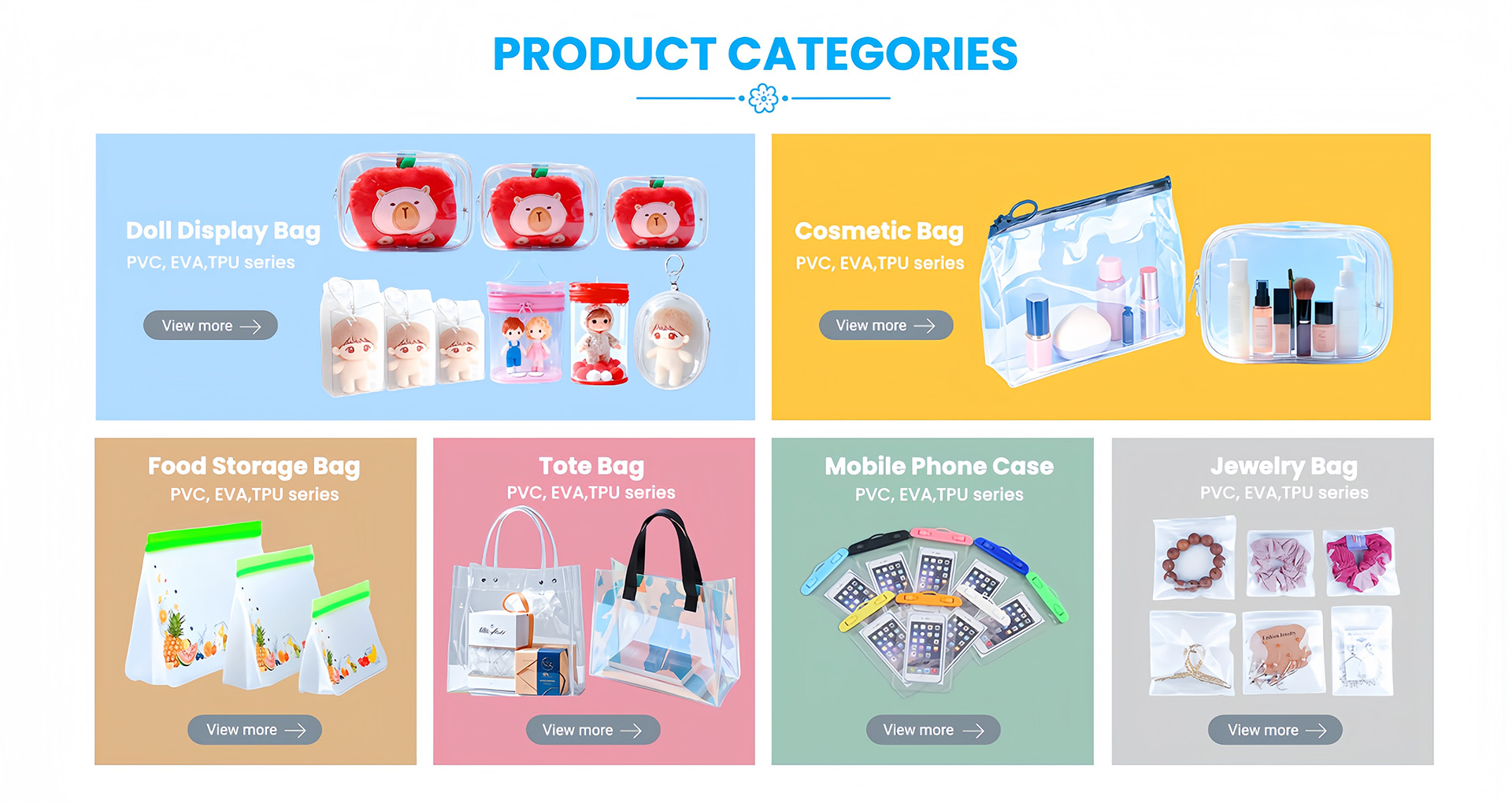 Our core strengths: Deep manufacturing expertise,This ensures strict quality control, competitive pricing, and reliable delivery. Extensive product portfolio, plastic bags:food packaging bags, jewelry bags, gift bags, cosmetic bags, stationery bags, and so on. Materials: PVC,EVA,TPU,OPP,CPP,PET,PE,PA series.